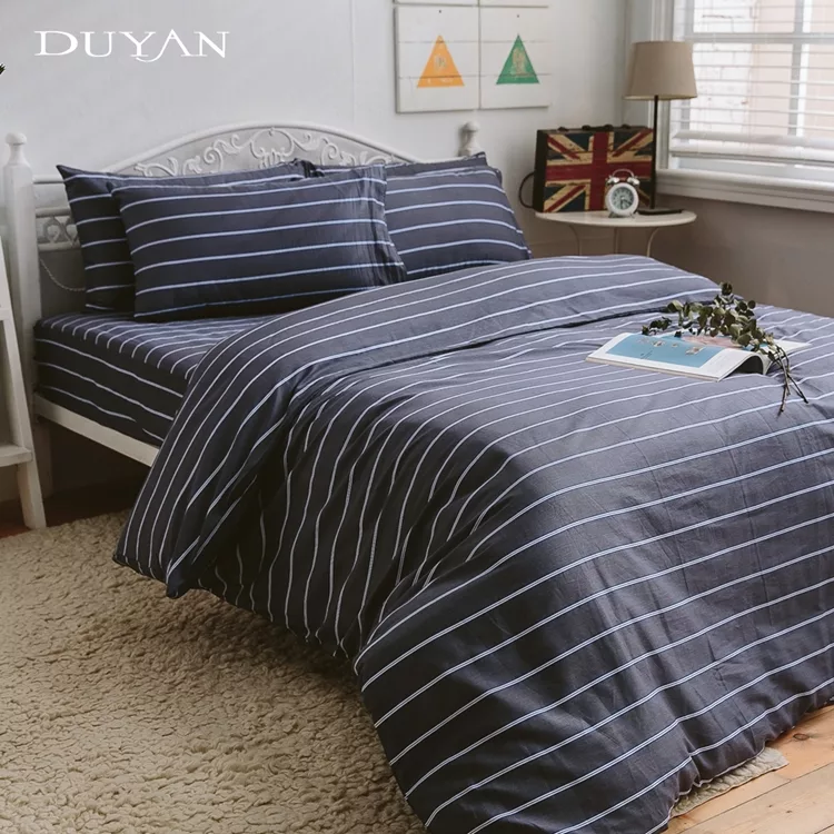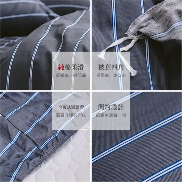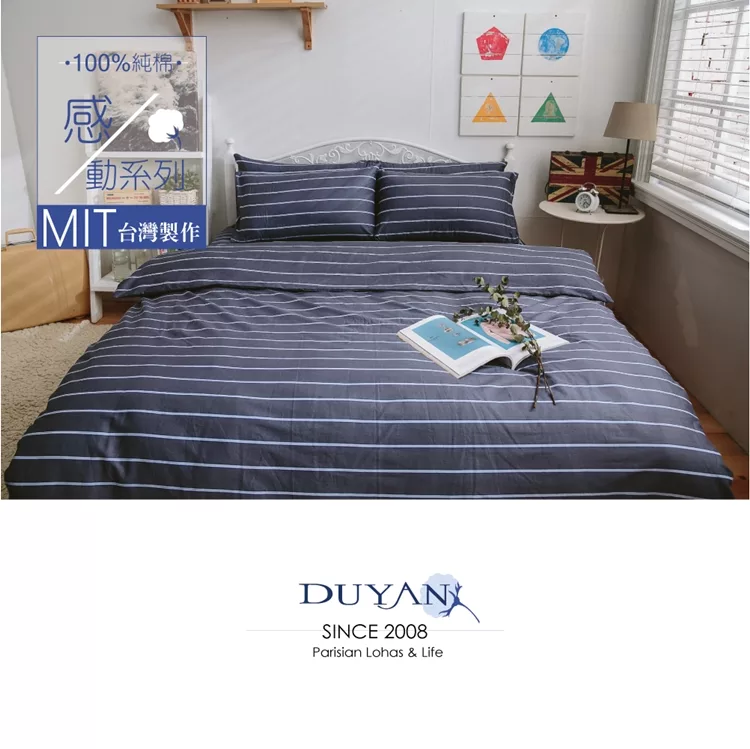 像這次特別換個~《DUYAN 竹漾》台灣製100%純棉雙人四件式舖棉兩用被床包組-藍調時光