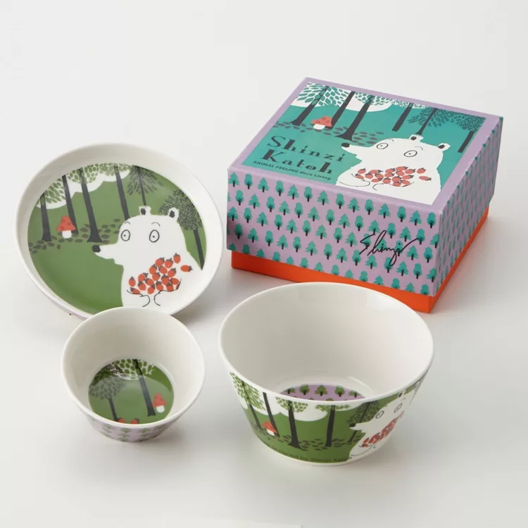 像這次特別換個~【小倉陶器】加藤真治系列_森林熊陶瓷缽盤三入禮盒
